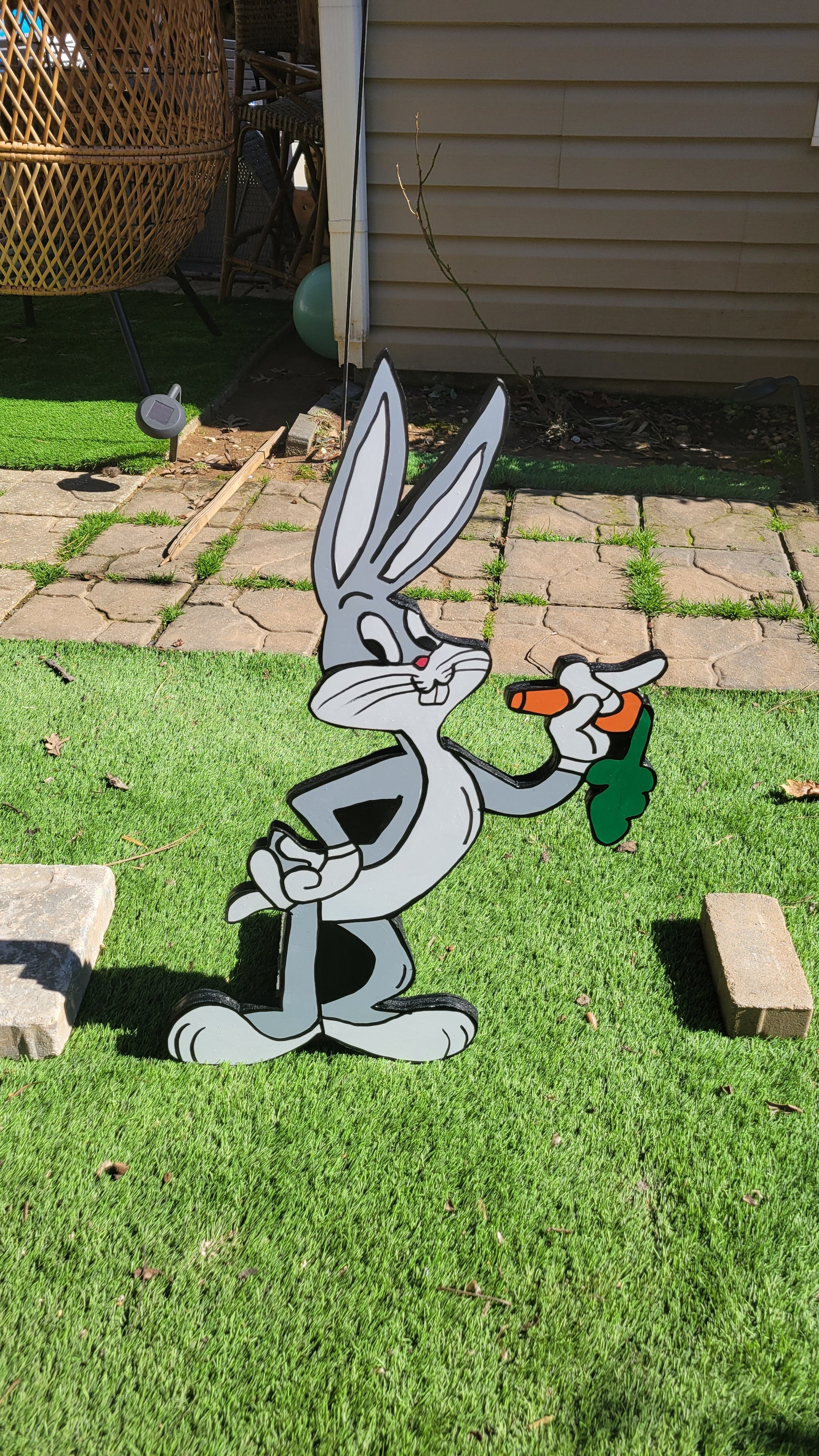 27" tall Bugs bunny and Daffy Duck. How to create a whimsical outdoor Oasis. By embracing nsture in your outdoor space. Handmade and handpainted by Wood Chic designs. Weather sealed with outdoor poly shield clear coat. All orders are made to order. 2 week process time before shipping.