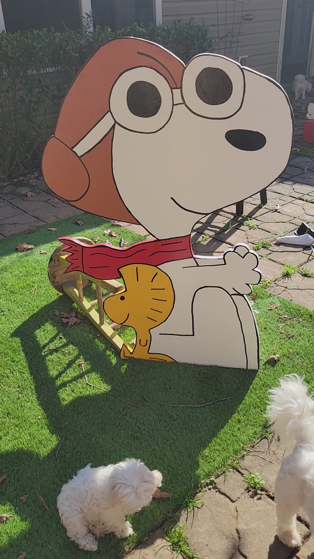 48" tall life size Flying ace Snoopy. Painted on both sides. How to create a whimsical outdoor Oasis. By embracing nature in your outdoor space. Handmade and handpainted by Wood Chic designs. Weather sealed with outdoor poly shield clear coat. All orders are made to order. 2 week process time before shipping by FedEx home delivery