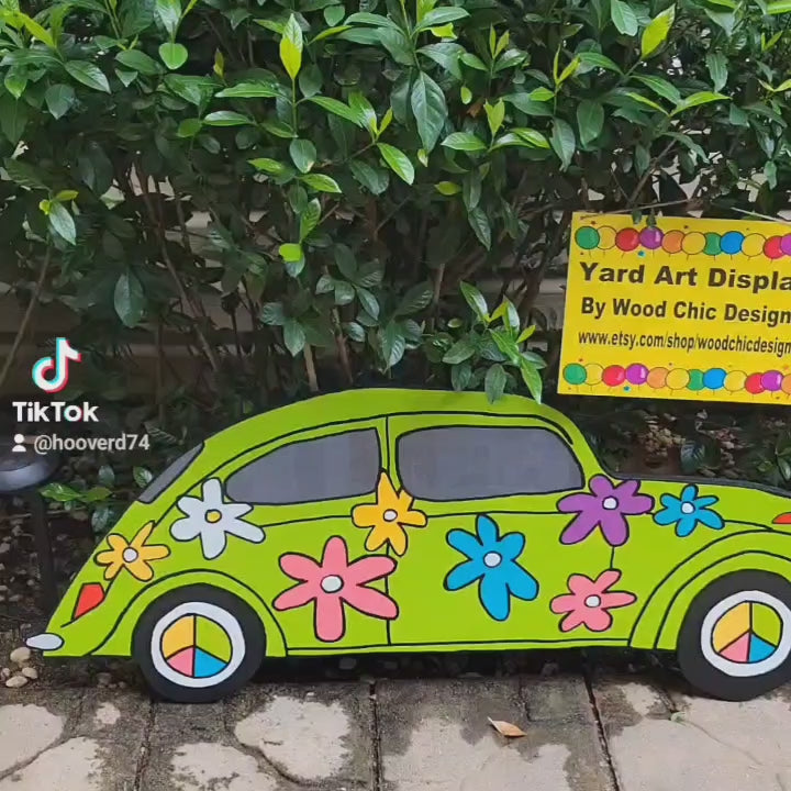 33" long VWBUG wood art. Handmade and handpainted by Wood Chic designs. Weather sealed with outdoor poly shield clear coat. All items are made to order and 2week process time before shipping by FedEx home delivery.